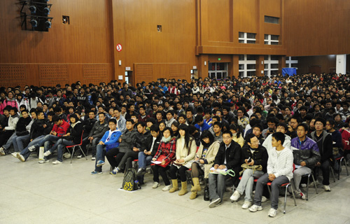 11月25日晚,由校党委宣传部和校团委共同组织的国际形势专题报告会在南校区绣山活动中心举行,中国人民大学国际关系学院副院长、外交学专业博士生导师金灿荣教授应邀作了题为《当前国际热点问题与中国外交的新挑战》的专场报告,受到现场2000多名师生的热烈欢迎和普遍好评,掌声不断。报告会由校党委宣传部部长吕卫东主持。