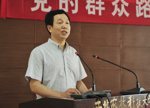 根据校党委安排,学校7月23日邀请中央党校党建部党的领导与领导科学室主任蔡志强教授来校在国际交流中心208会议室作了题为《加强群众路线教育构建和谐党群关系》的专题报告,这是学校举办的第二场党的群众路线教育实践活动专题报告。中央45督导组副组长张其华和成员曾卫明、吕曼出席报告会,校党委书记梁桂,常务副书记王万忠,常务副校长赵忠,副书记、纪委书记杨景昆,副校长王跃进、吴普特,副书记徐养福、马建华以及教育实践活动领导小组全体成员、部分处级领导干部、党务系统科级以上干部、思想政治理论课教师、学工系统专职干部200人听取了报告。报告会由校党委副书记徐养福主持。