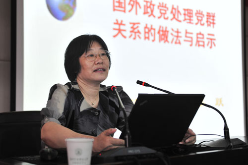 报告会上,姜跃教授凭借长期从事世界政党比较研究的雄厚理论基础和丰富经验,穿插辅之以英、法、德、意、俄、新加坡以及西亚、拉美诸国的生动案例,主要从“面对社会变化,巩固和扩大党的社会基础,争取更广泛的支持”、“面对意识形态的困境,强化以政策和政绩获取民心”、“在效率与公平之间寻求平衡,保持经济、社会的可持续发展”、“发展党内民主和社会民主,拓展沟通渠道,以有效的机制和体制保持党与民众的经常性联系”、“反腐倡廉,保持清正廉洁的公众形象”等五个方面,系统介绍了国外政党在处理党群关系以及推进反腐倡廉等方面的主要做法、经验、教训和启示,使与会人员从新的视角深刻体会和感悟了新时期党的干部队伍必须密切联系群众、加强作风建设、保证清正廉洁的重要性、现实性和紧迫性。