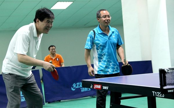 此次比赛共有12支代表队参加,宣传部代表队是5支独立组队的参赛者之一。在5月21日下午进行的分组循环赛中,宣传部代表队首战不敌党校办联队,随后连续战胜国资处代表队、纪监审博览园旱作室联队,英勇冲出D组。闫祖书部长和张昆伦老师、支勇平老师当天下午从阎良采访归来后直接到比赛现场,为迎战纪监审博览园旱作室联队加油助威。张昆伦老师还参加了最后一场的男单比赛,打败对方年轻骁将雷和涛,为第一阶段比赛画上了圆满句号。