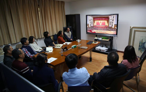 12月18日上午,党委宣传部工作人员怀着激动的心情观看了庆祝改革开放40周年大会直播,分享了改革开放的伟大成就。