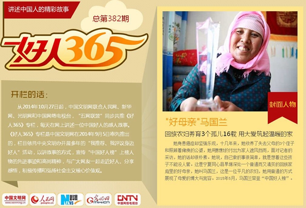 一年多以来,五家中央新闻网站,100余份都市报纸,不同的城市,不同的版面,不同的设计,传播着同一个名字——“好人365”。去年9月5日,中国文明网以“讲述中国人的精彩故事”为主题,推出了品牌专栏《好人365》,每天深情讲述一位中国好人的精彩故事,截至今年9月21日吸引了4.4亿人次的点击浏览。中央网站和全国各地百余家都市类报纸也纷纷跟进,在重要版面同步或定期刊发《好人365》封面人物故事,形成了报网融合互动、每天共讲一个精彩故事的新尝试。